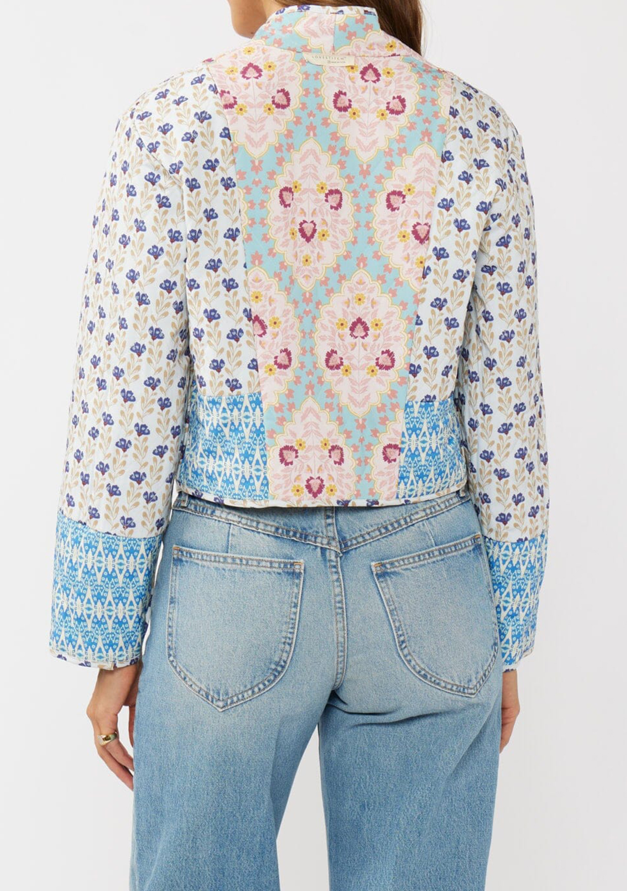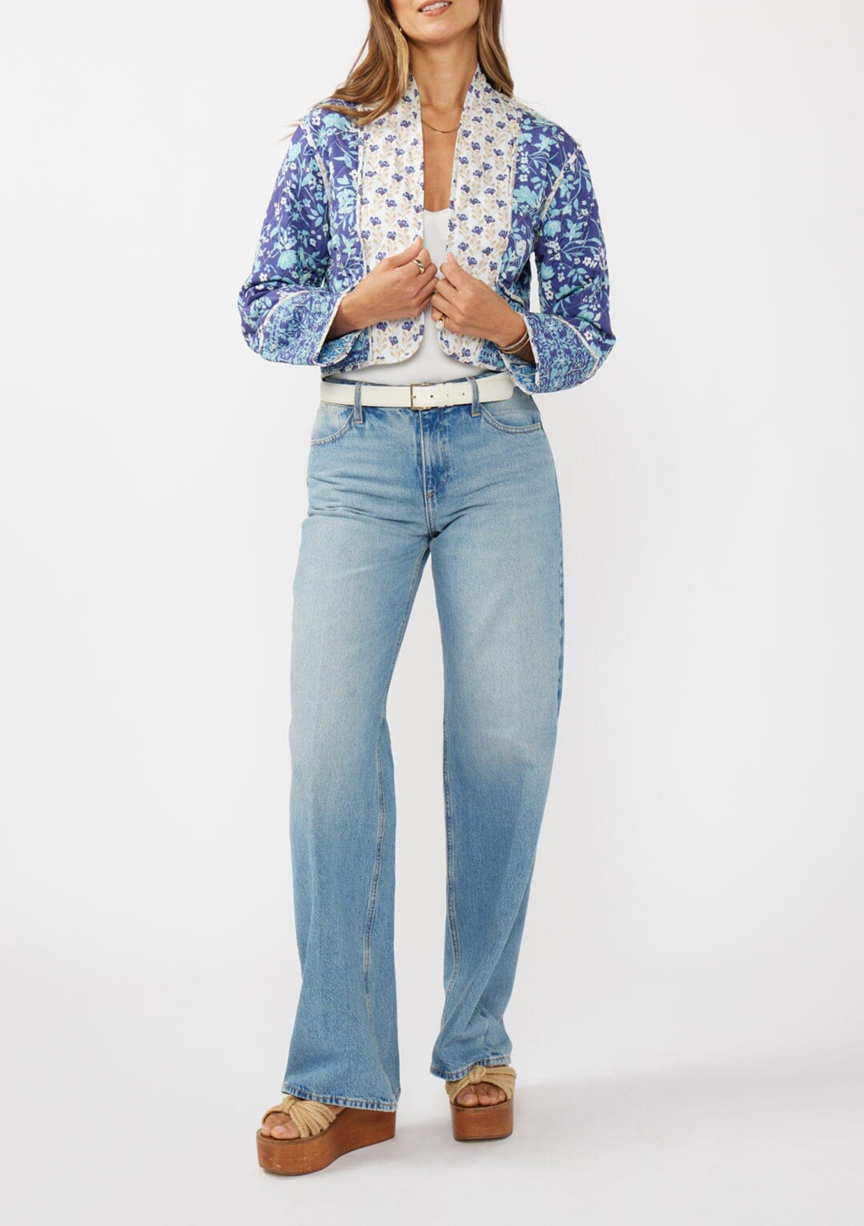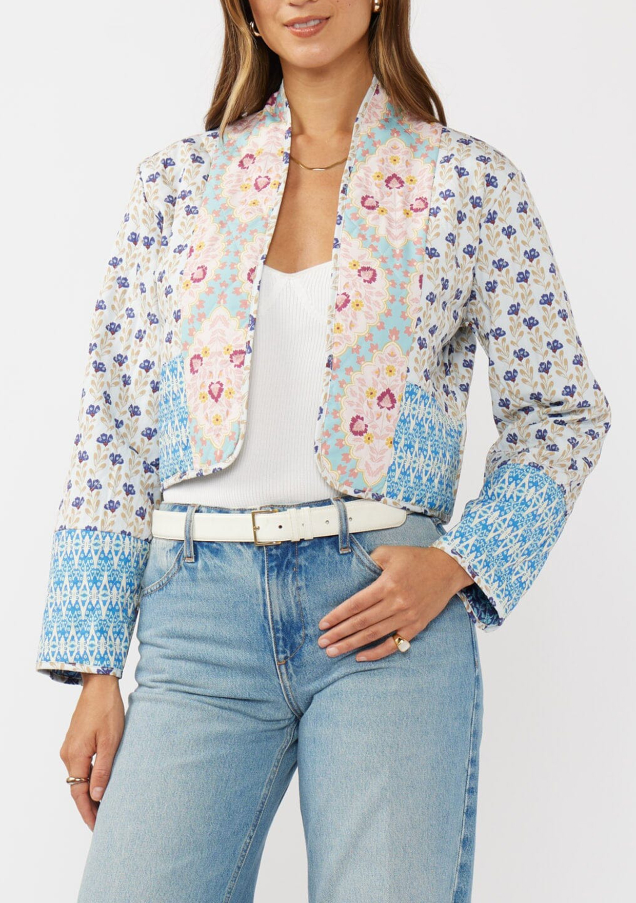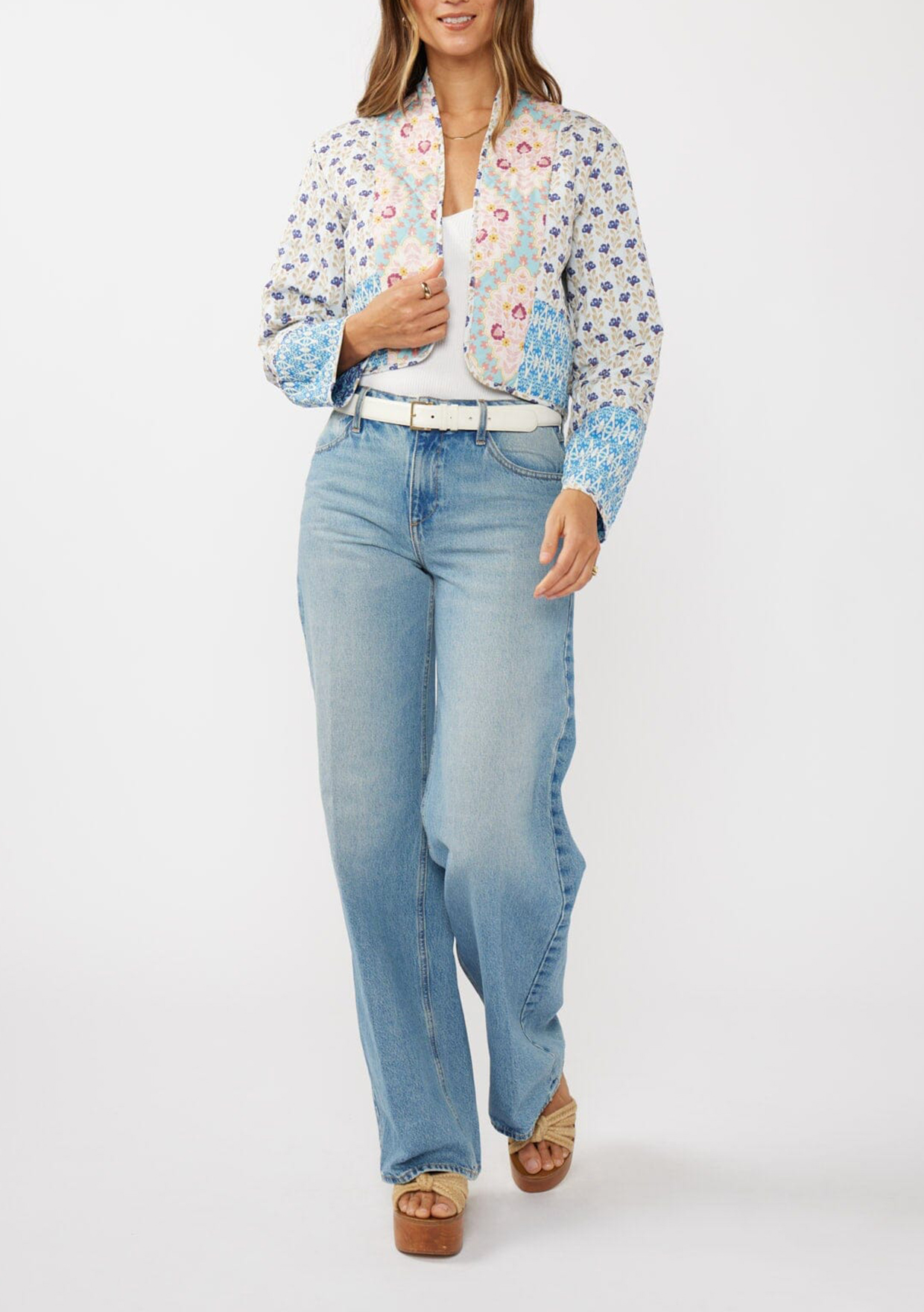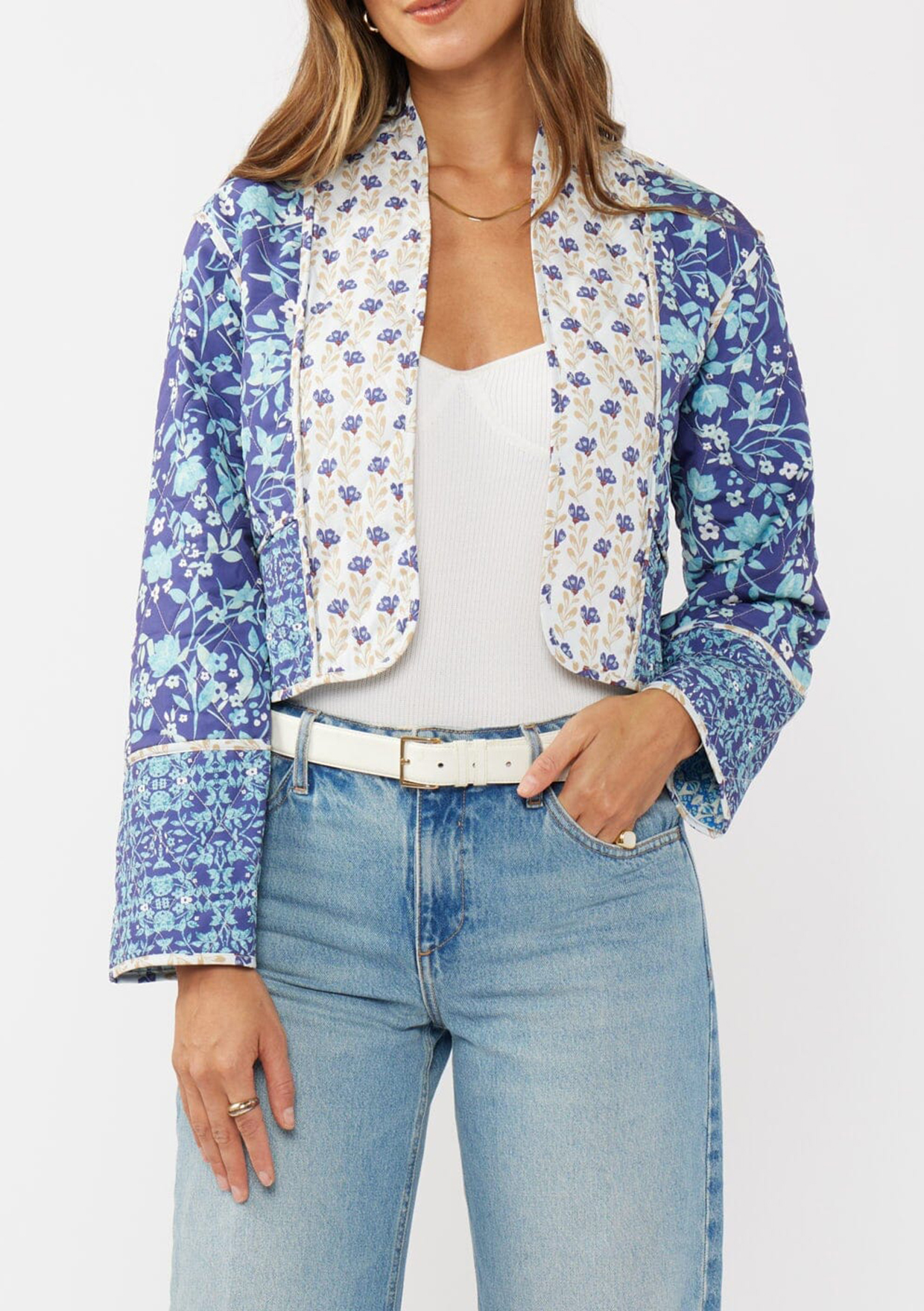 Make a bold statement with our bohemian floral jacket. Designed as the perfect light layer for transitional weather, it features a cropped silhouette and a reversible design for endless