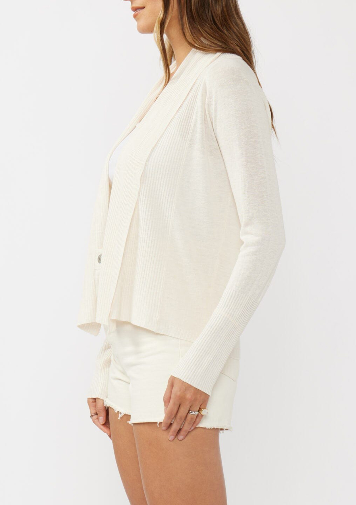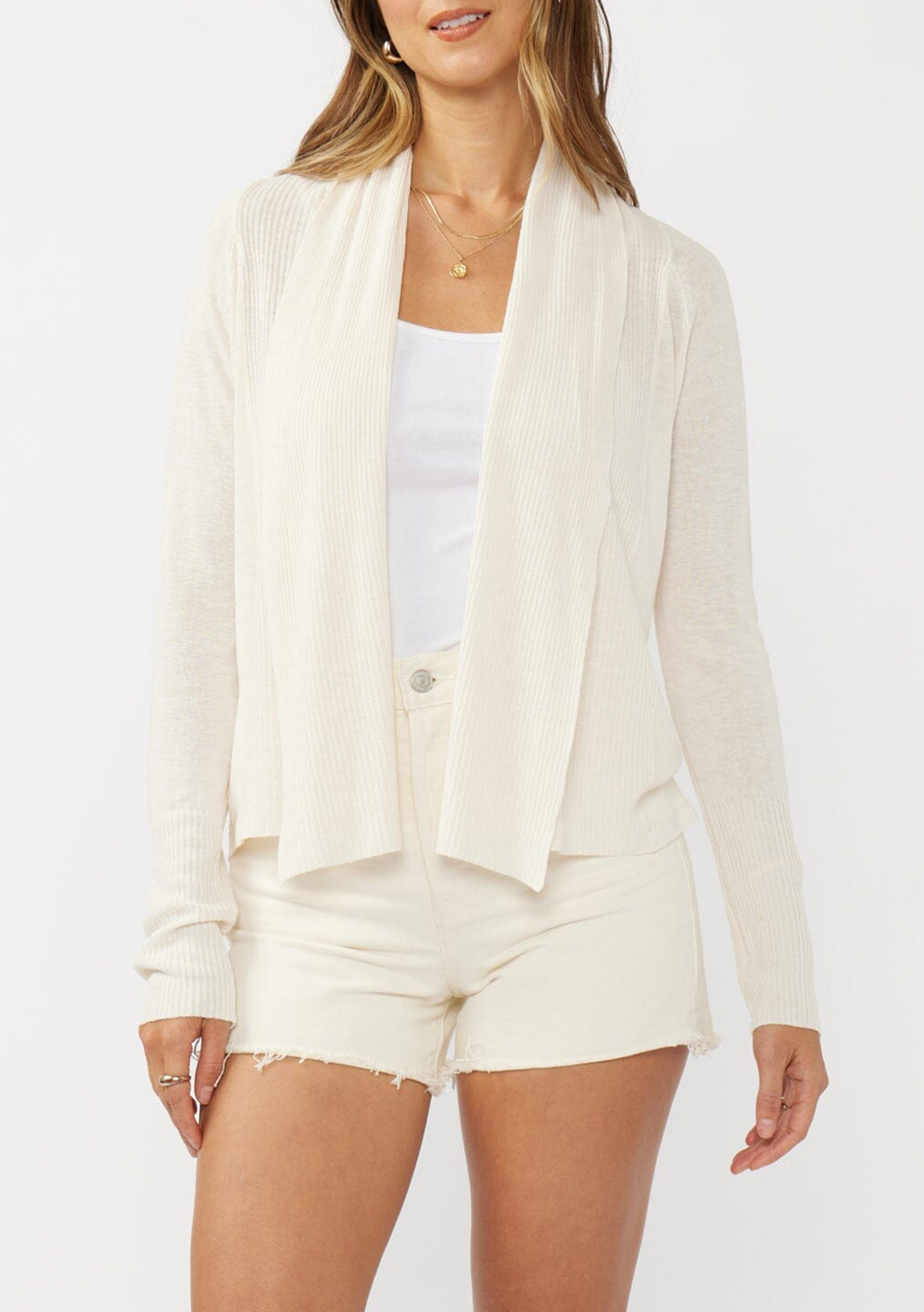 A must-have layer for breezy spring days, this lightweight linen-blend cardigan is the perfect finishing touch to your warm-weather wardrobe. Designed with a ribbed shawl collar, it drapes