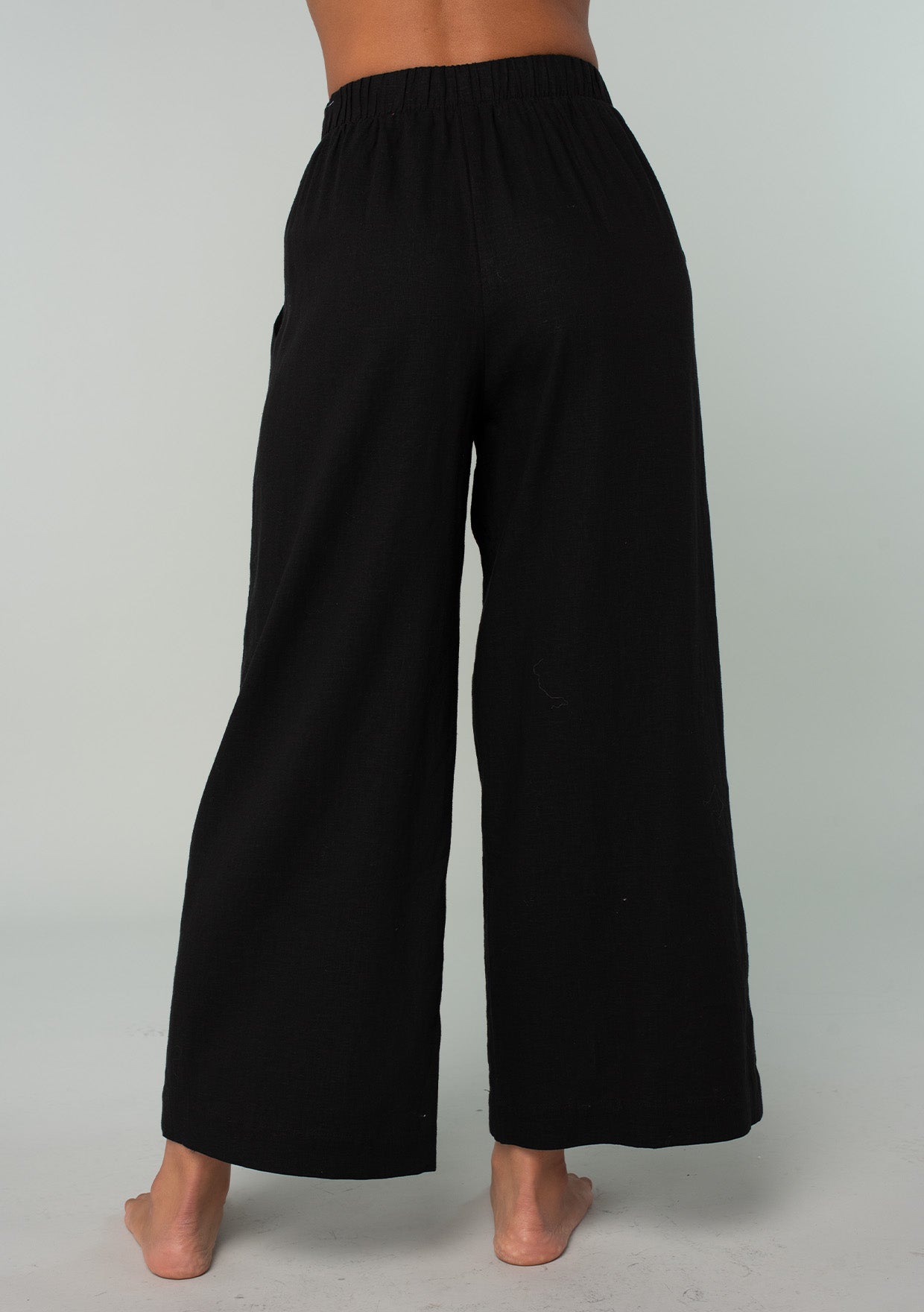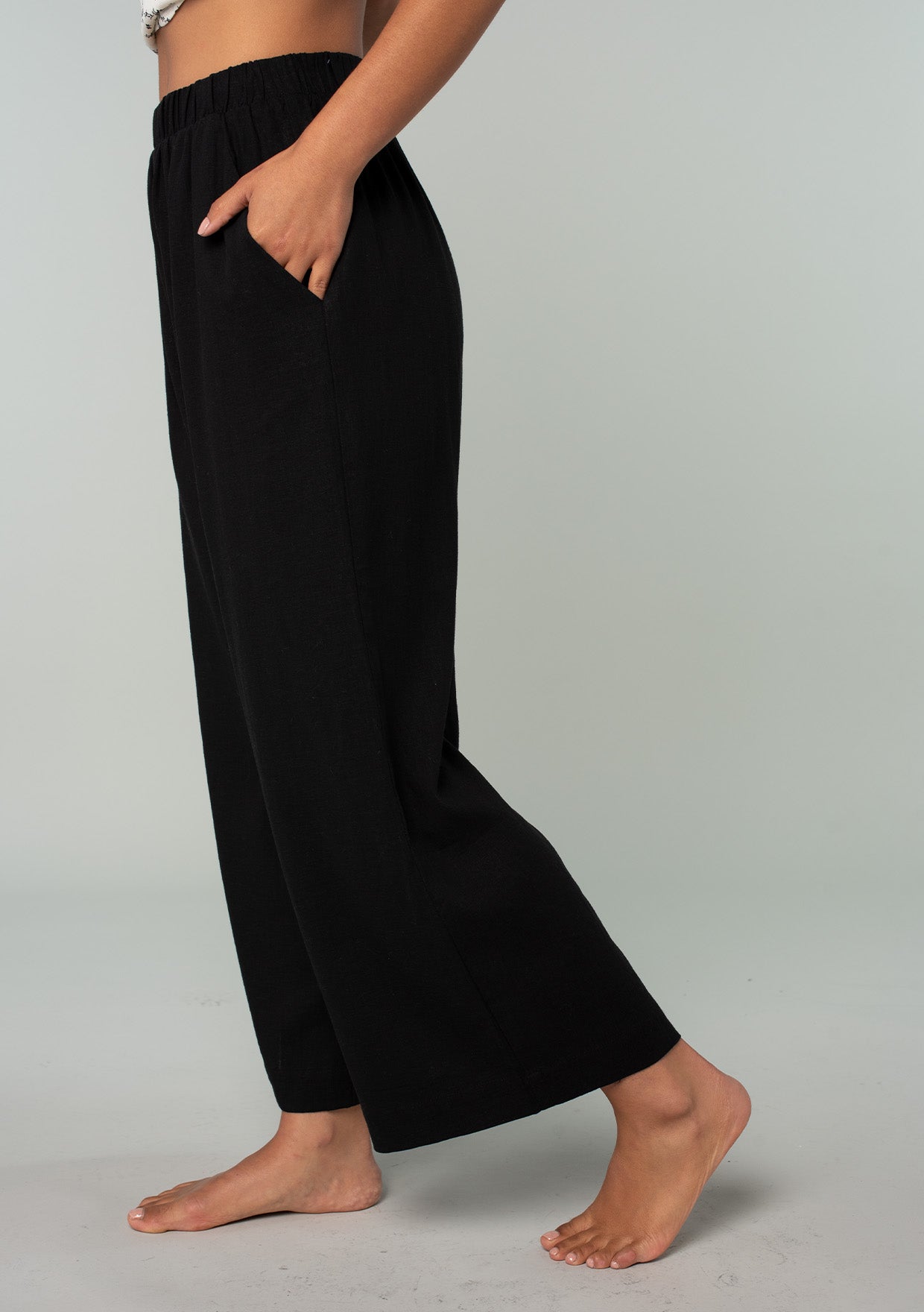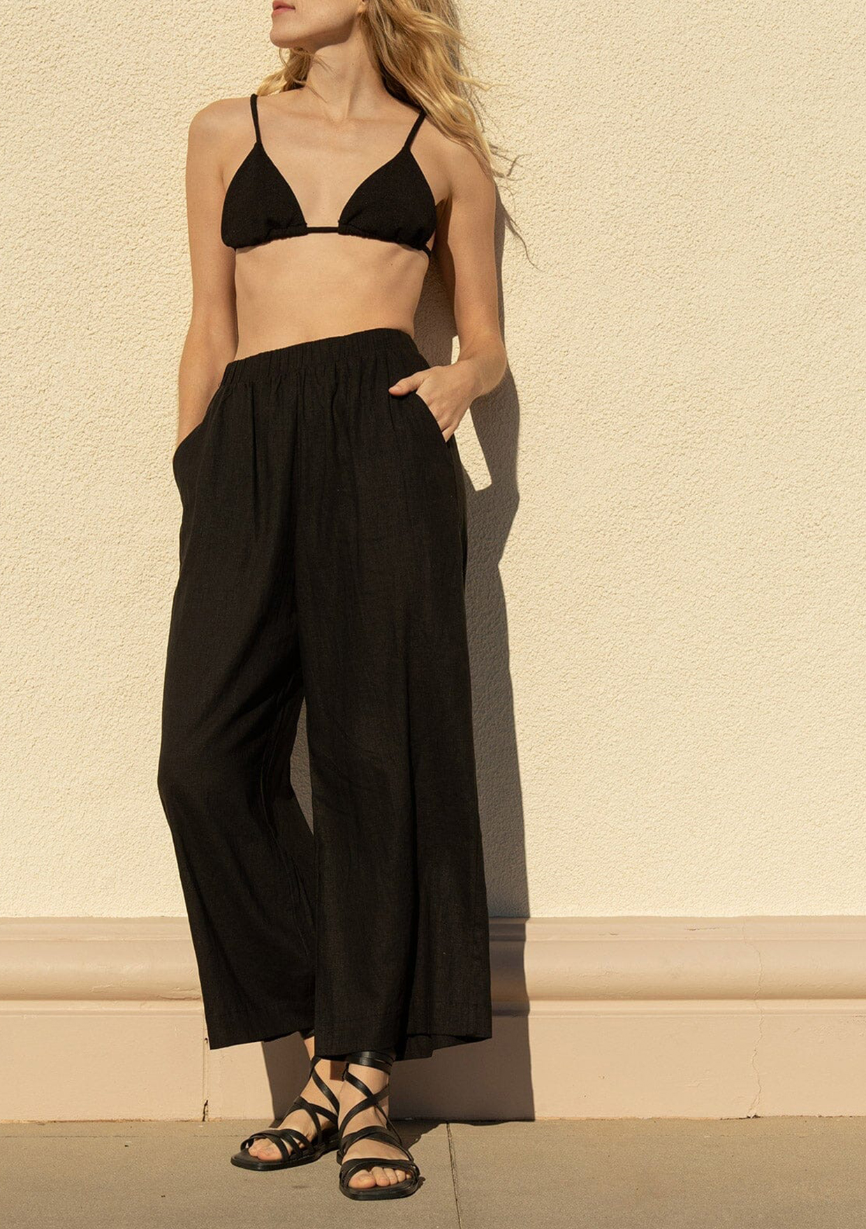 A must-have addition to every woman's wardrobe. These effortless wide-leg boho lounge pants are designed in a lightweight linen blend with essential side pockets and an elastic waist. Perfect
