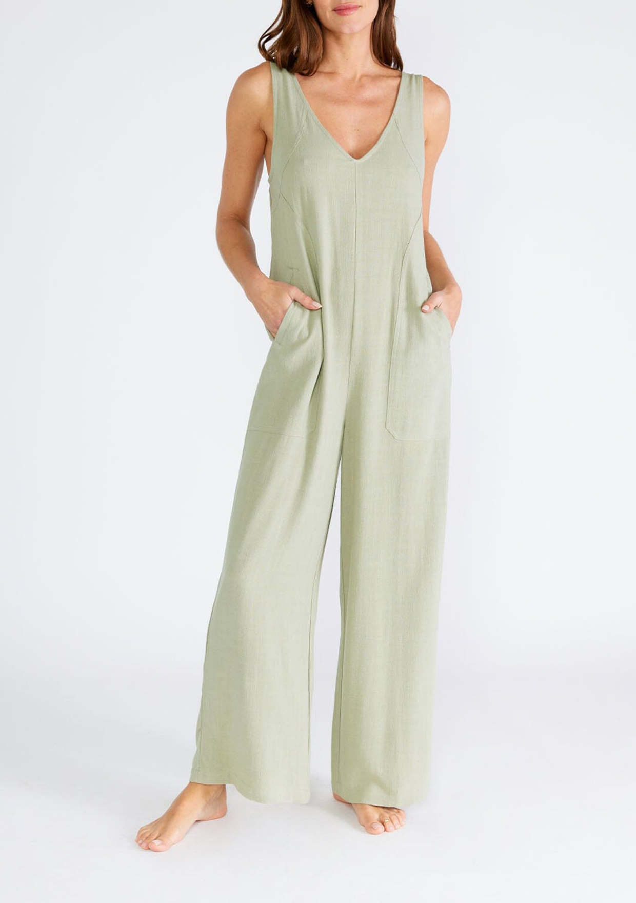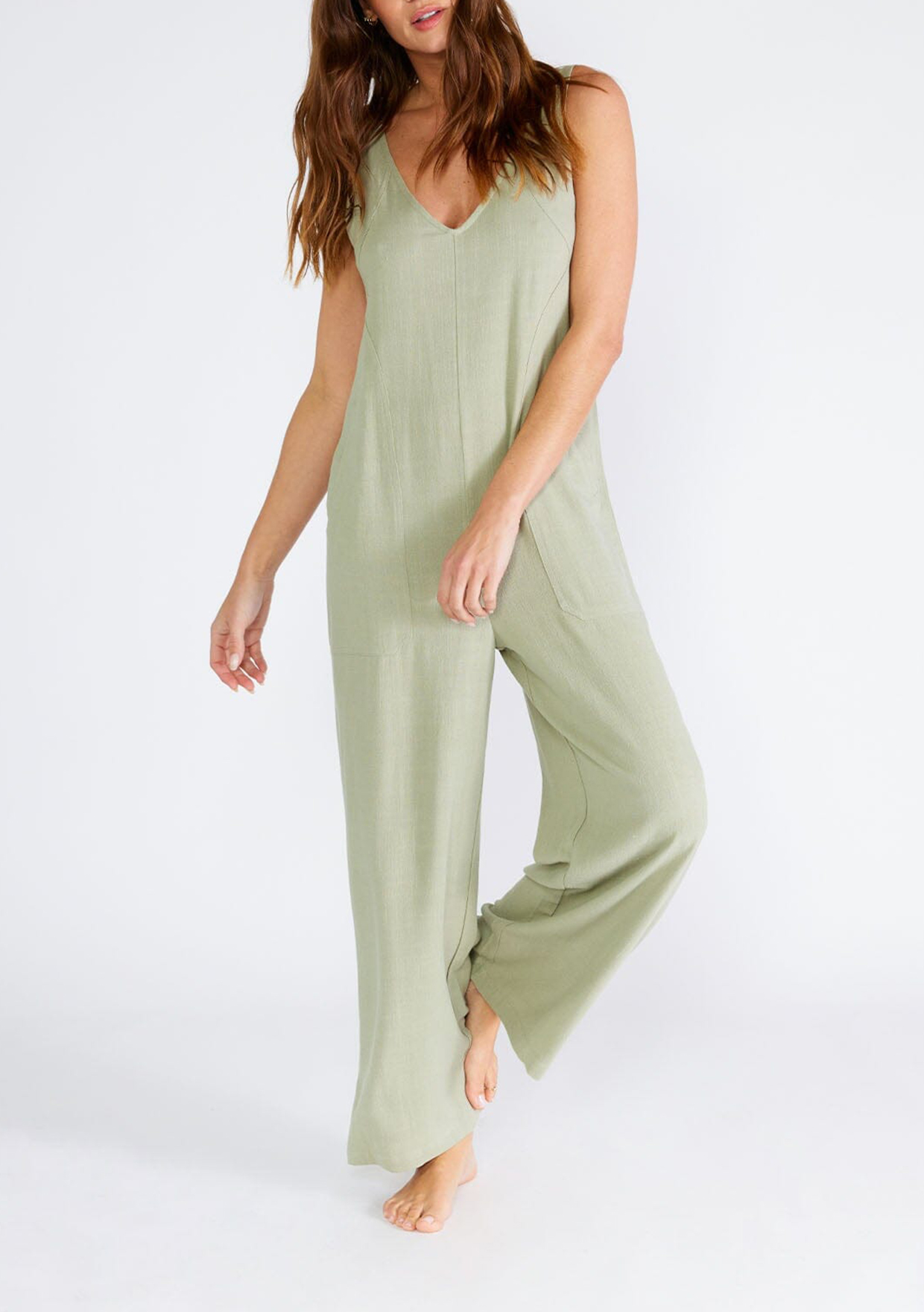 An effortlessly cool one-and-done style perfect for lounging or running errands. Featuring a flattering v-neckline, a trendy long wide-leg, and adjustable tank top straps. We love to style