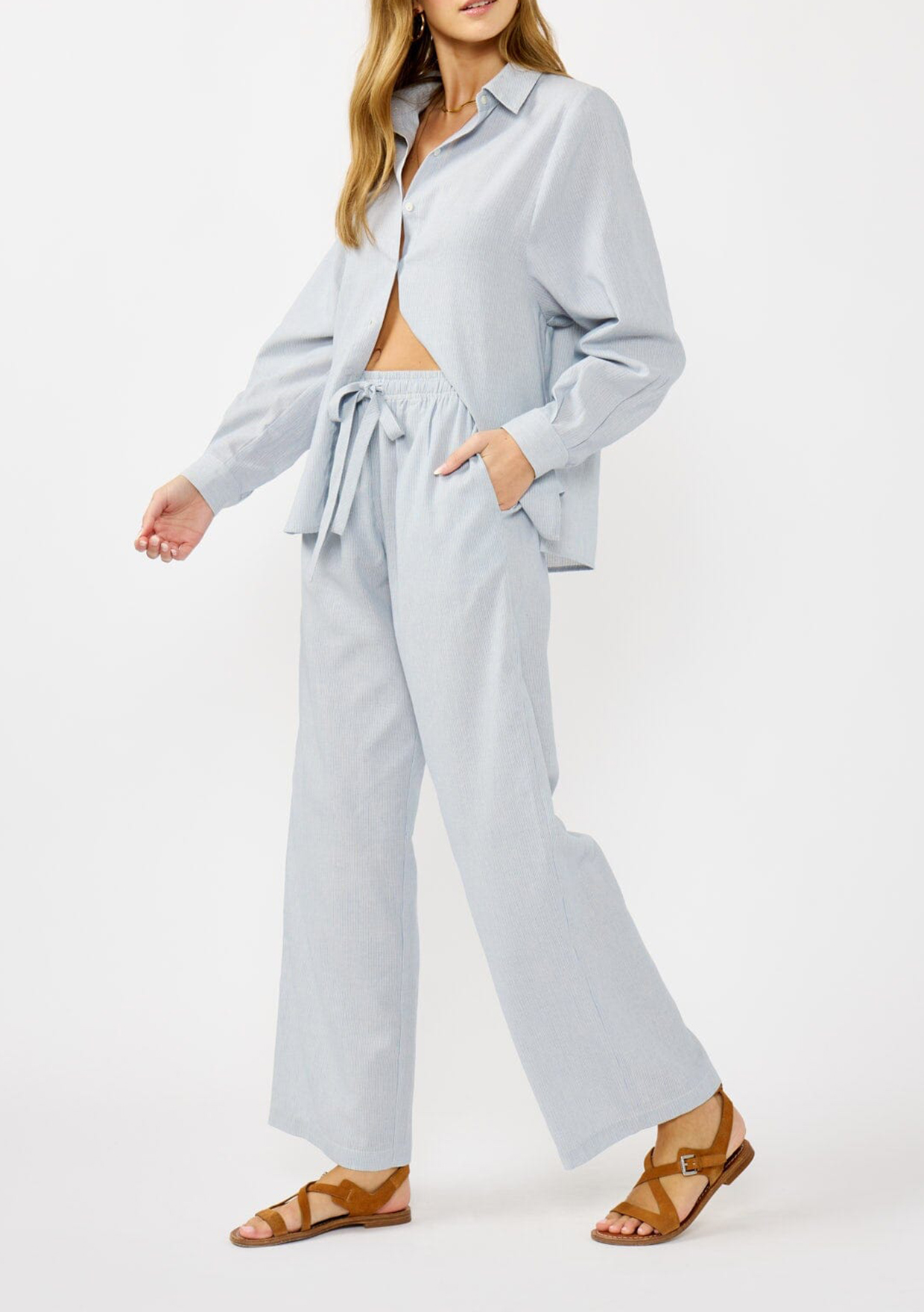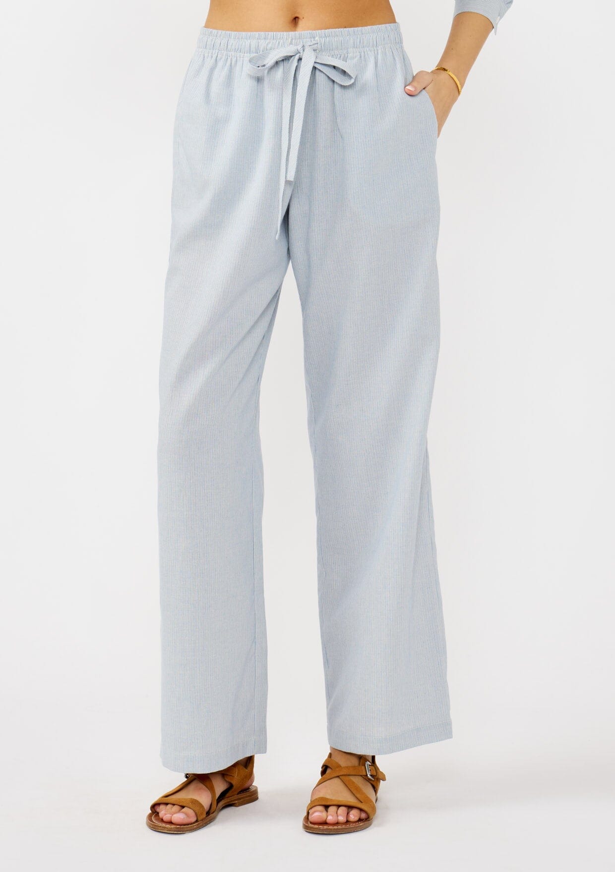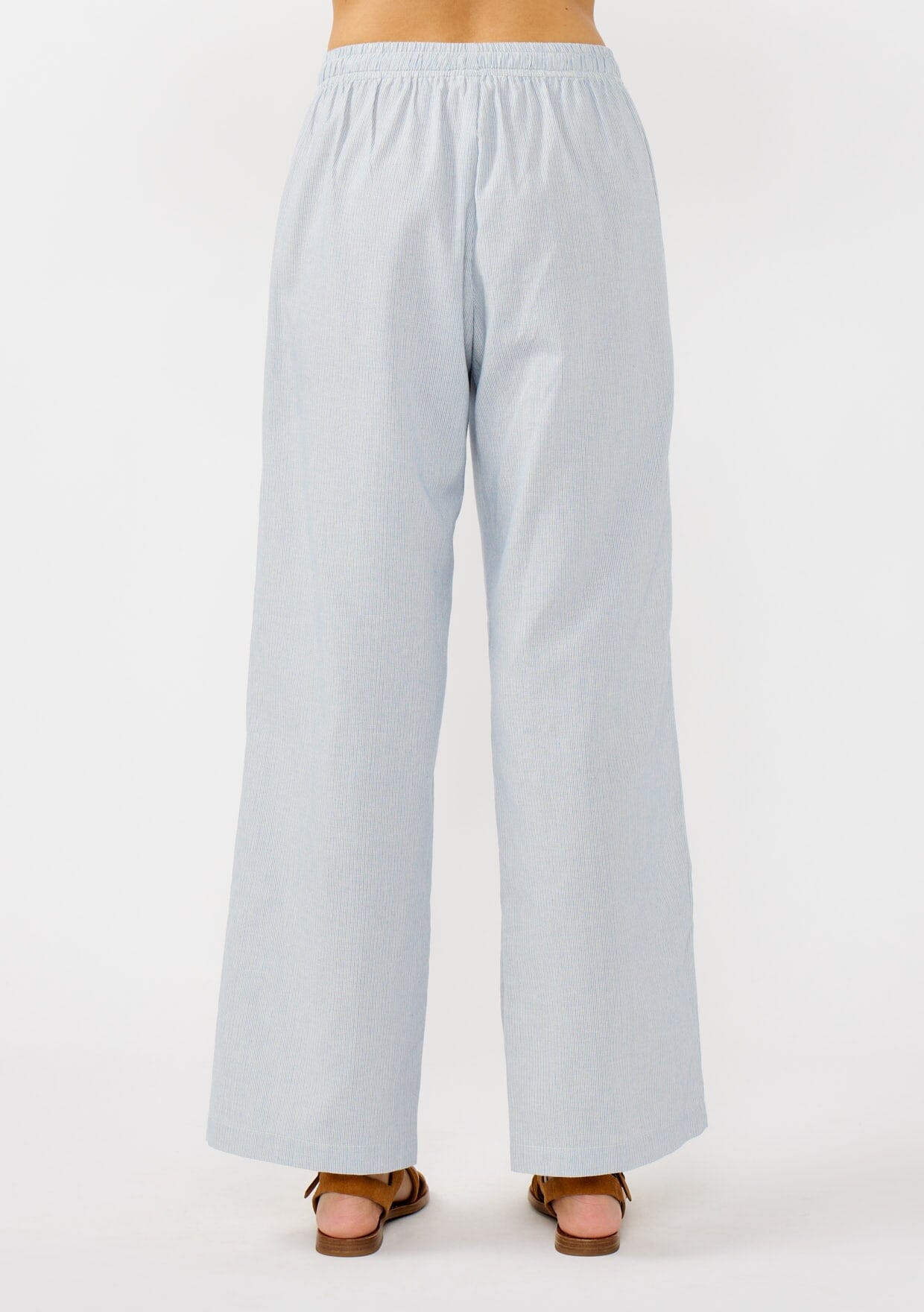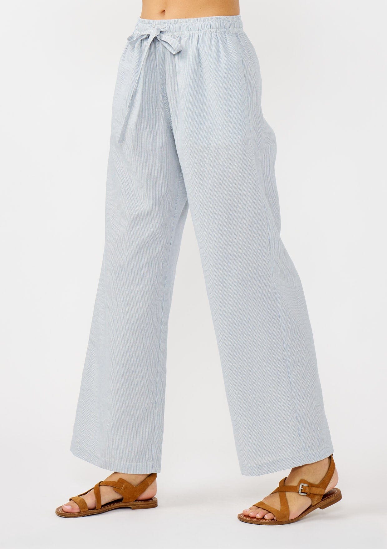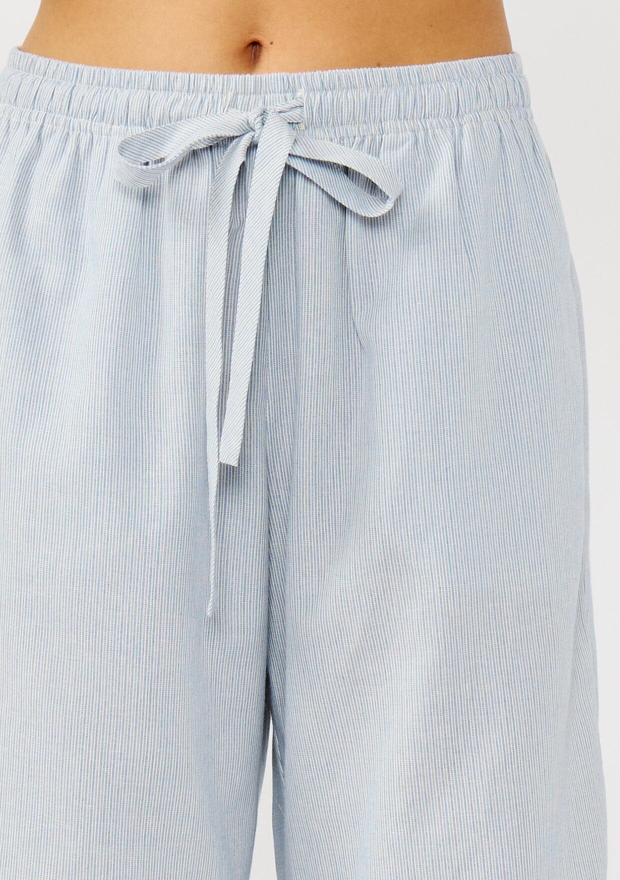 Meet your new go-to lounge pant—so comfy, you might mistake them for pajamas! These effortless wide-leg pants are crafted from a soft cotton blend with a chic blue stripe, featuring a relaxed