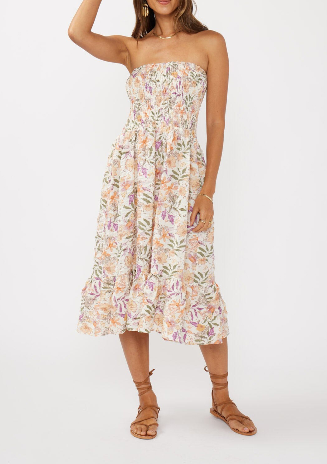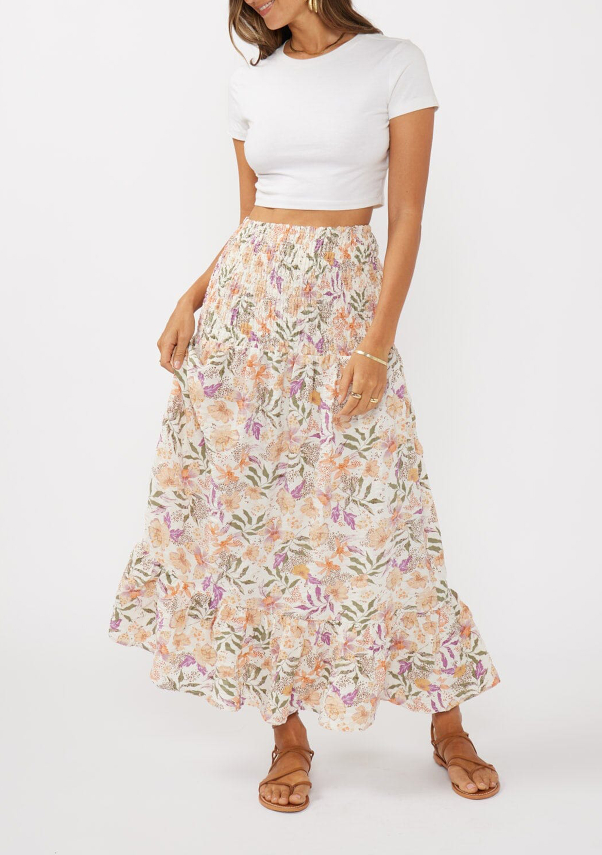 Spring just brought you the ultimate 2-in-1 skirt and midi dress combo! Featuring a flowy tiered hem and a comfy smocked waist, this piece effortlessly transitions from beachside fun to a