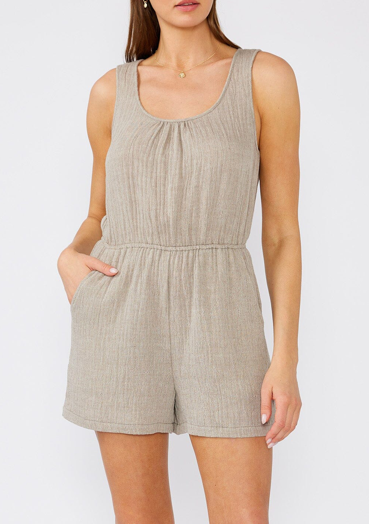 Romper weather is almost upon us, and we can't wait to break out this simple and chic one-piece. With a flattering scooped neckline, handy side pockets, and back keyhole detail with single