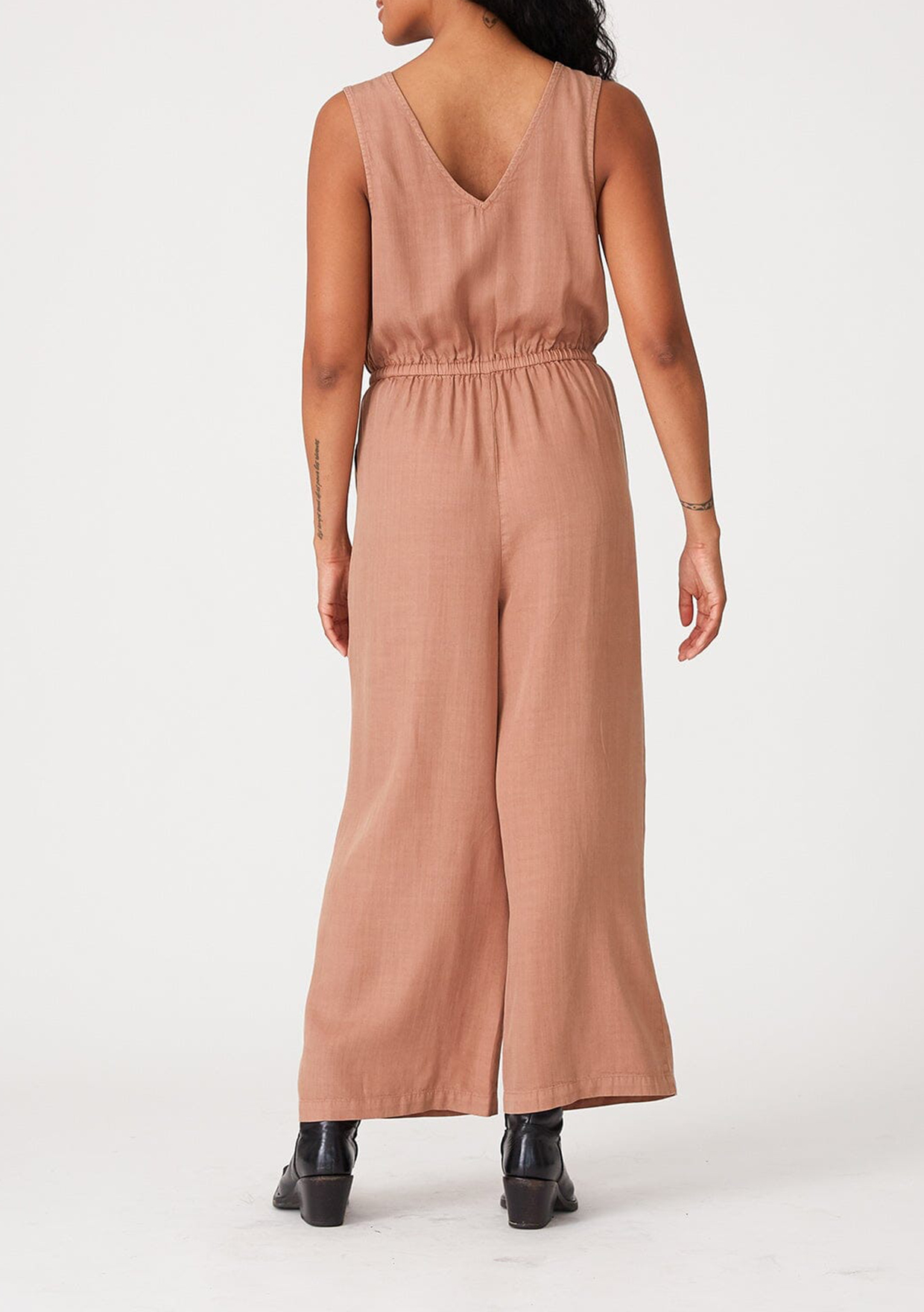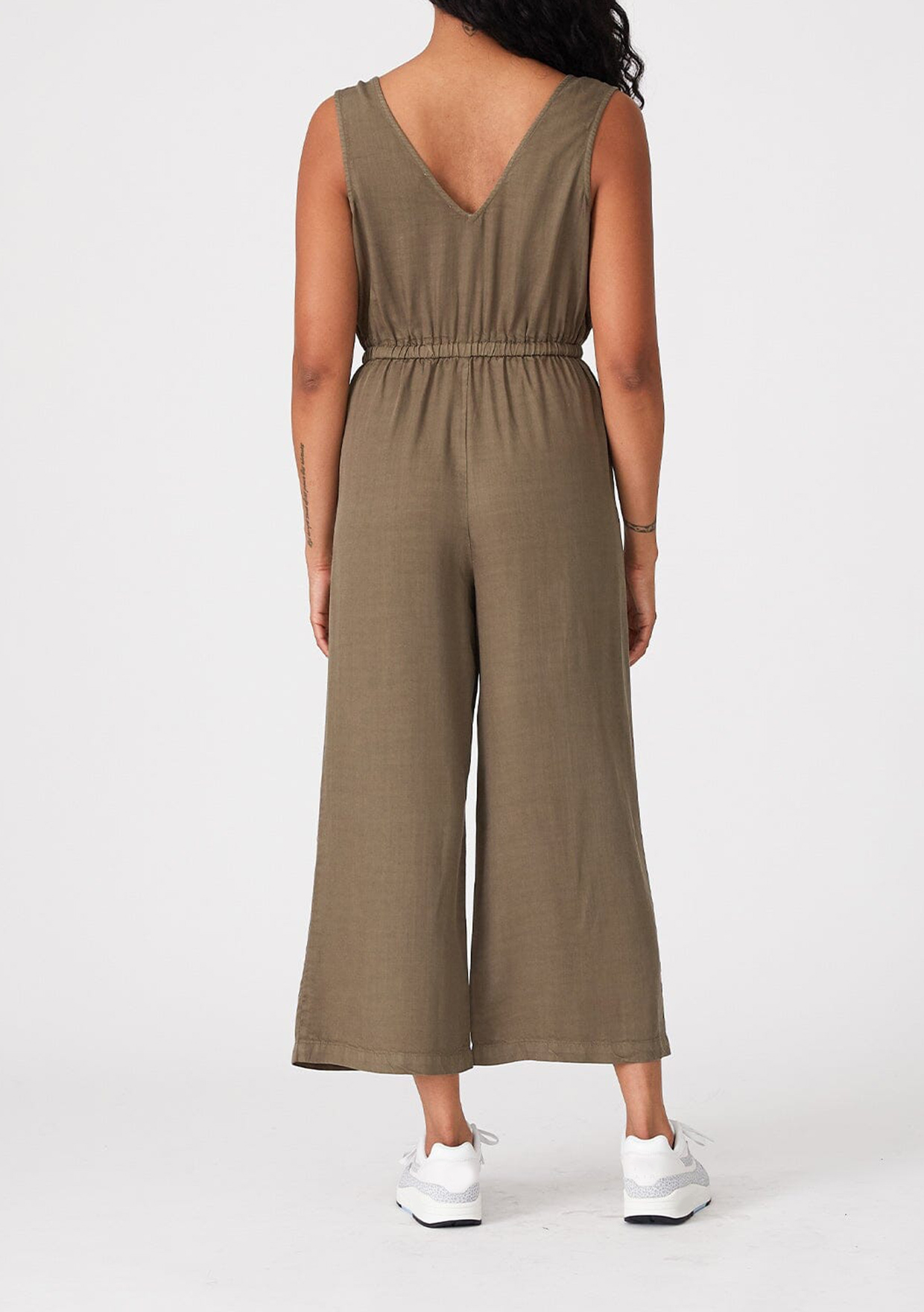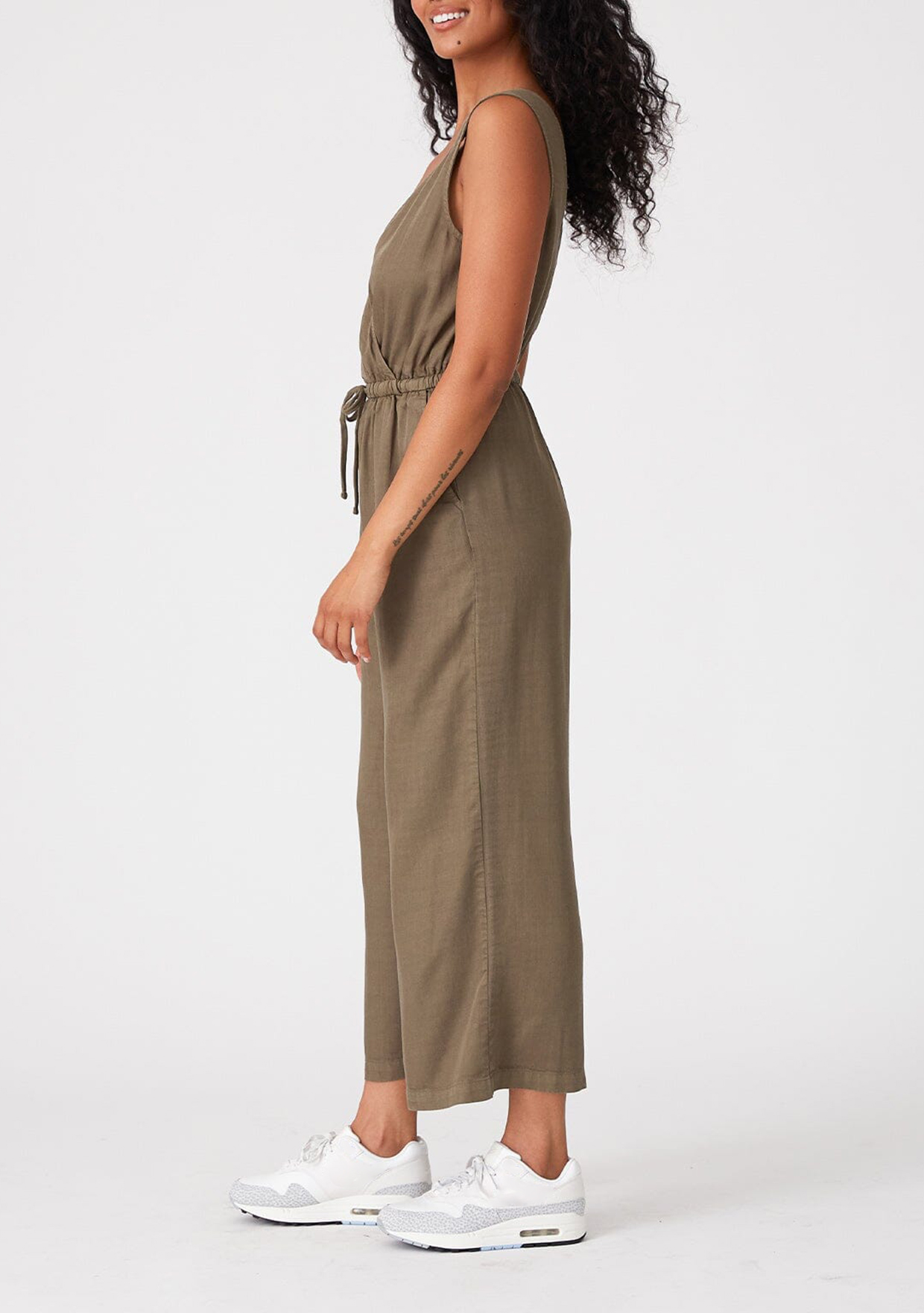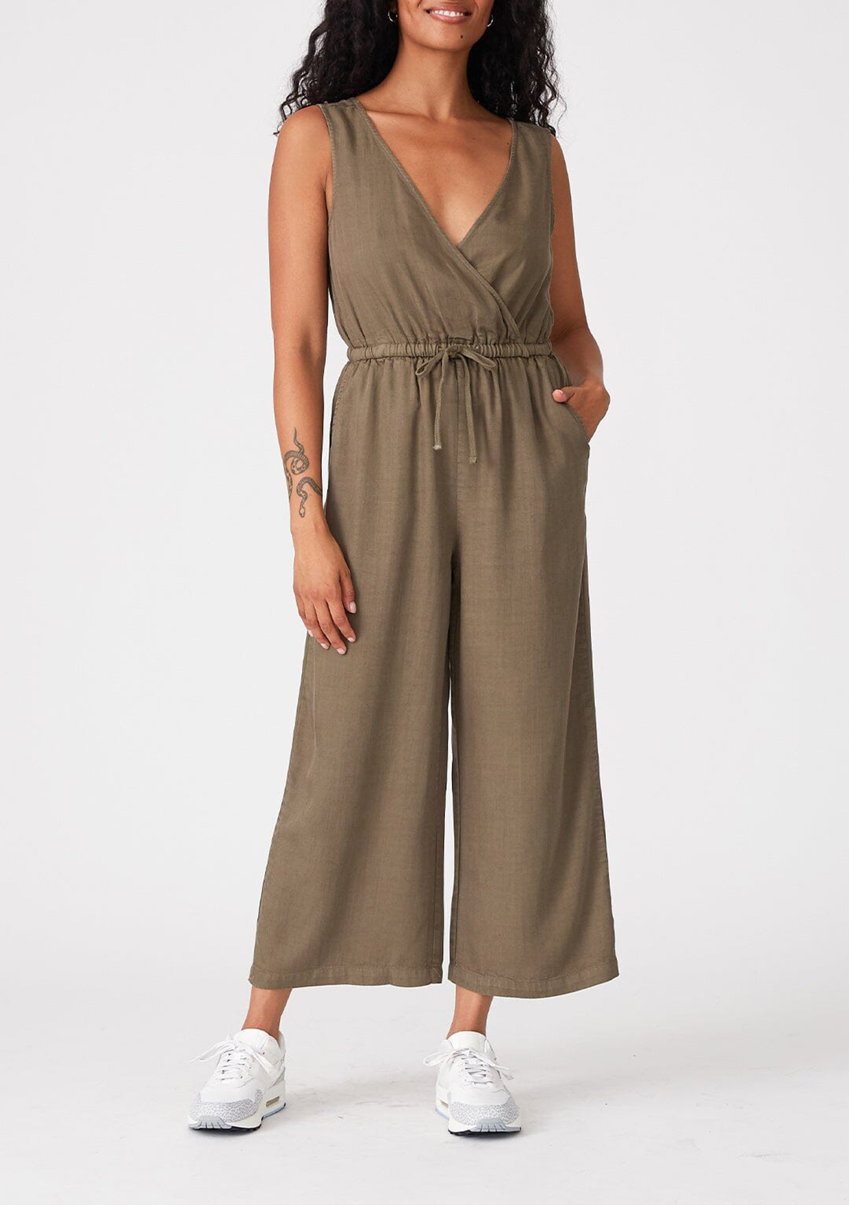 Cut in an effortlessly relaxed fit, our essential sleeveless jumpsuit is an easy one-and-done style. Featuring a flattering surplice v-neckline and an elastic waist with adjustable drawstring