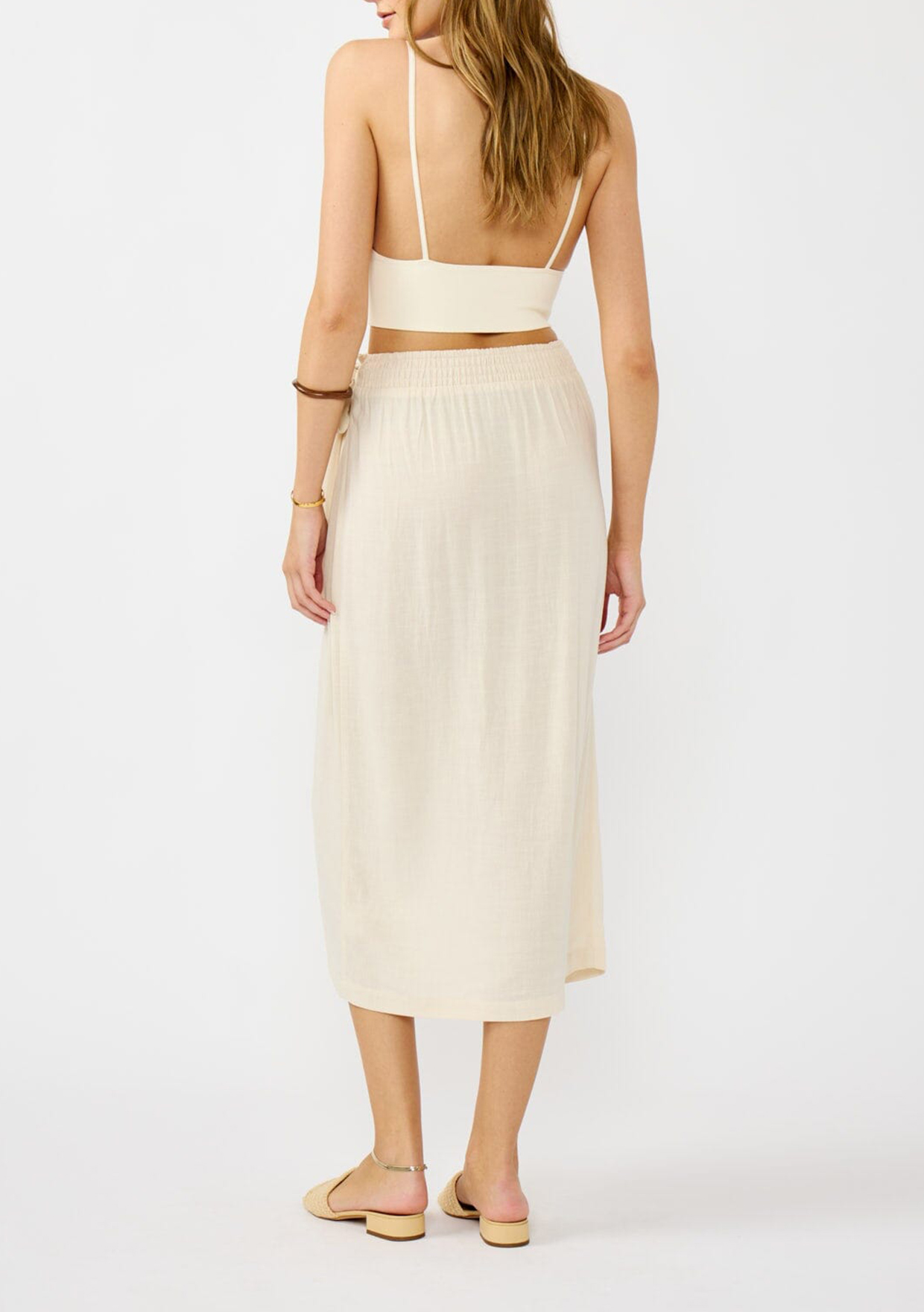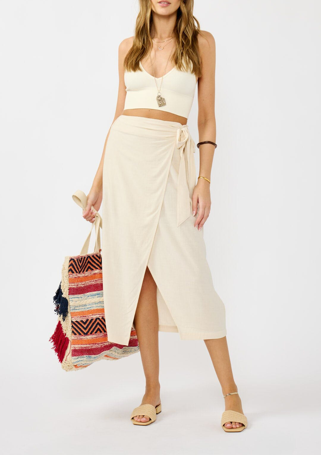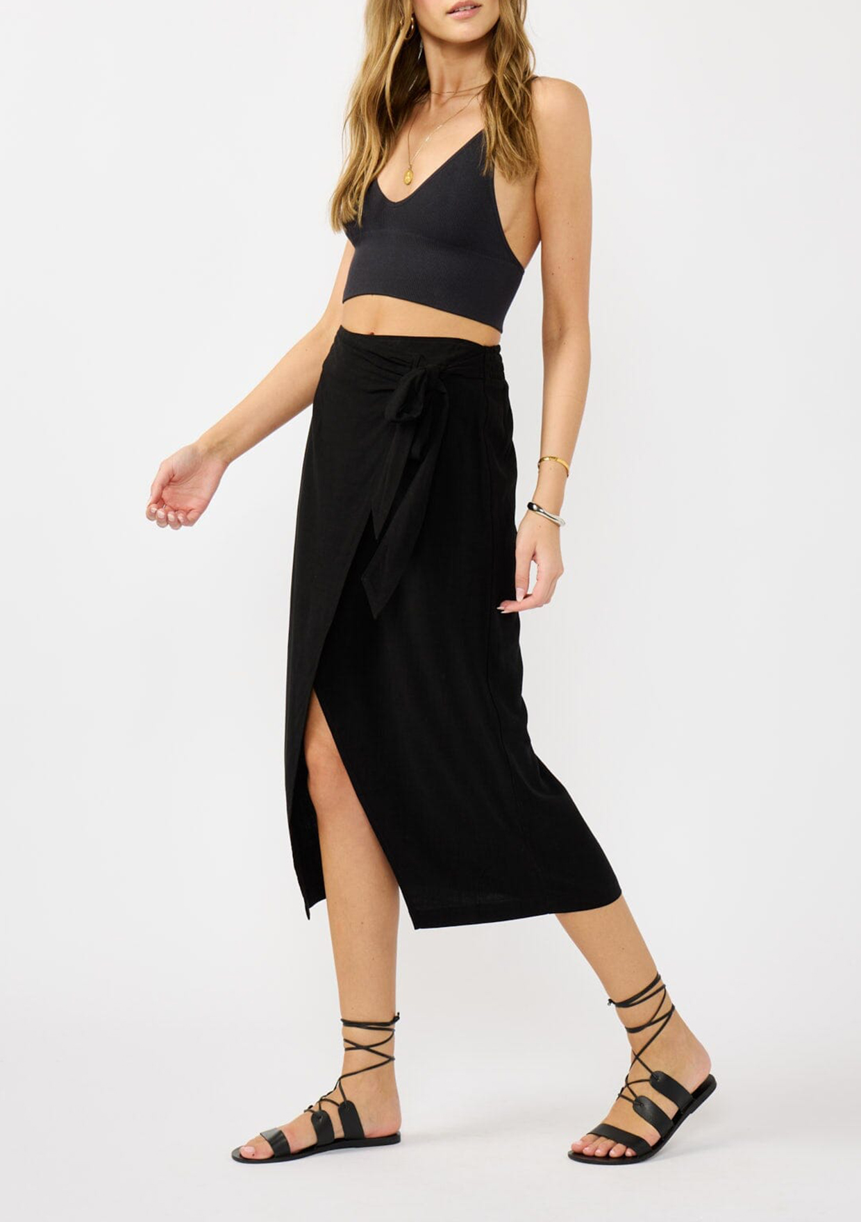 Give your denim a break and slip into this effortlessly chic wrap skirt. Designed with a sleek mid-length silhouette and a flattering side tie closure, it's the perfect blend of comfort and