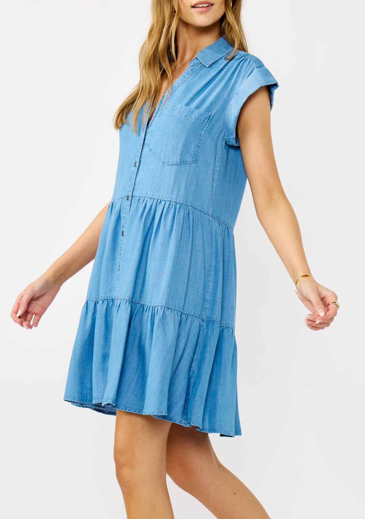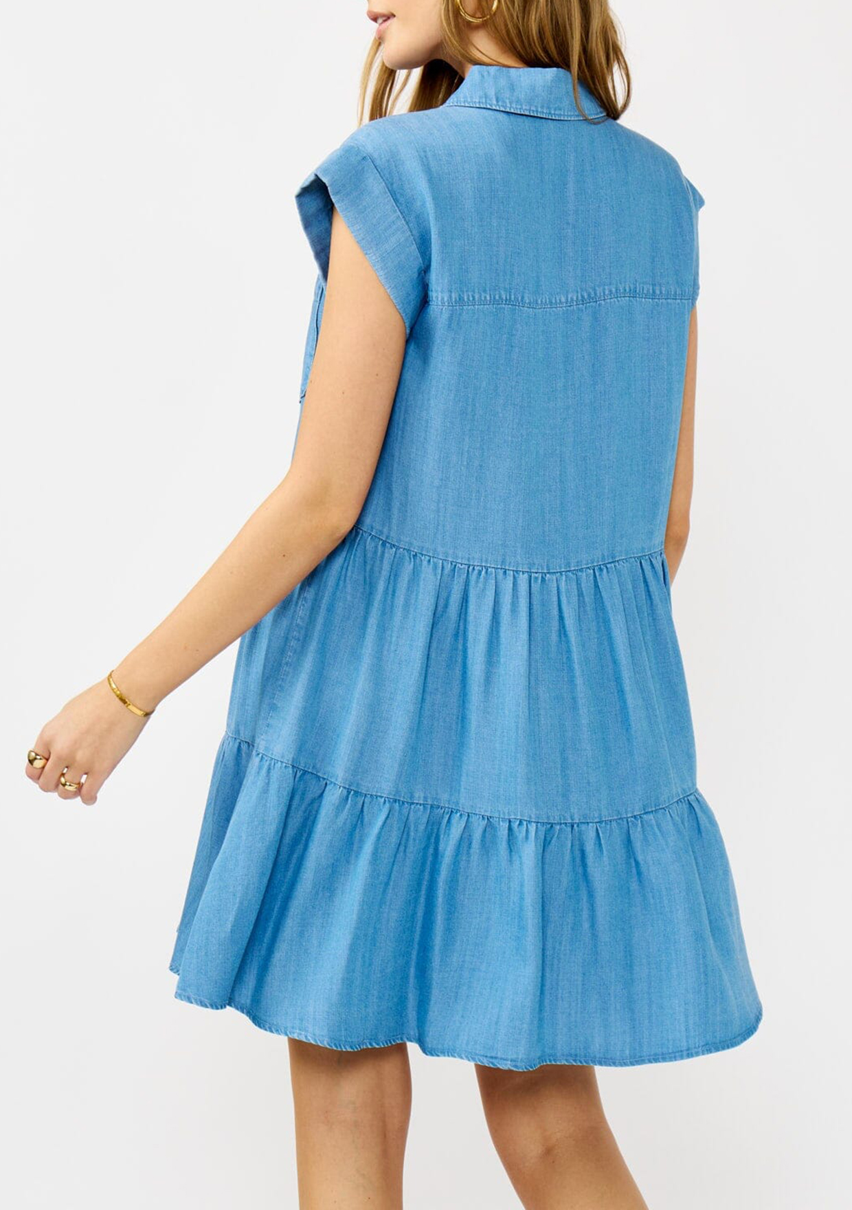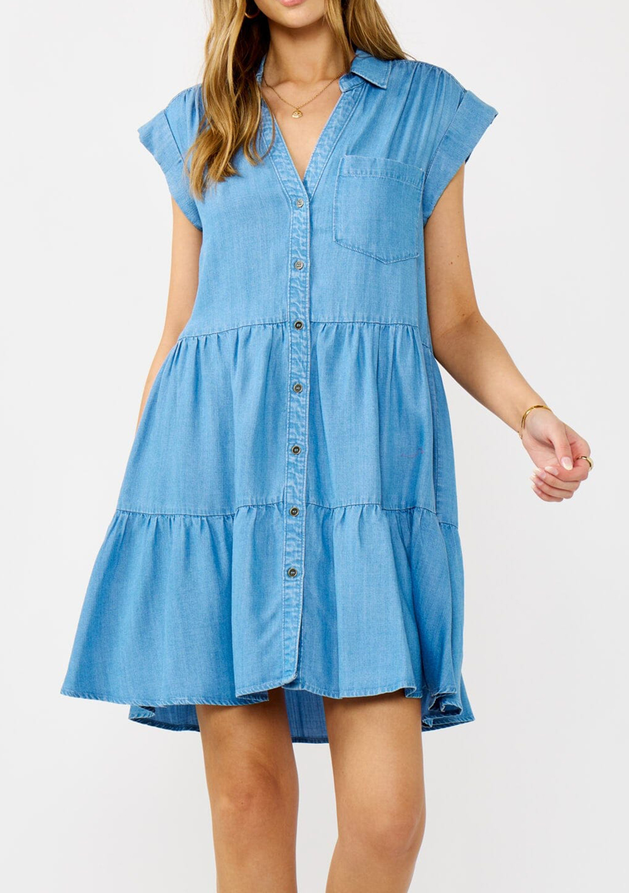 Soft, breezy, and made to move with you—this tencel dress is the definition of laid-back elegance. Featuring short dolman sleeves, a button-up front, and a tiered skirt that sways with every